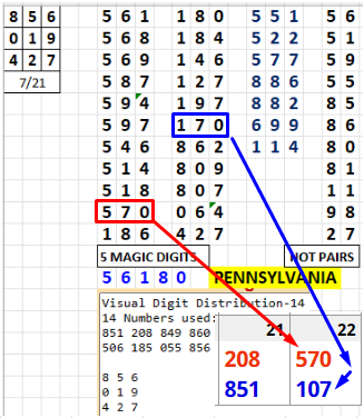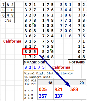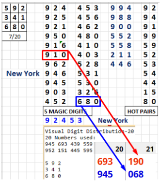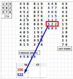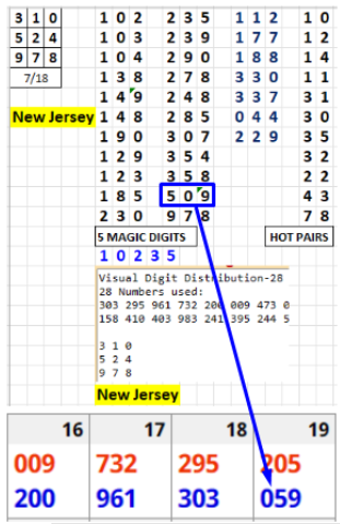 The basic Excel sheet gives you 22 singles and 7 doubles. However, if you are on a tight budget, use the 8 Number version of the system. This sheet will many times give you the hit - while only playing 8 numbers. For example, the 976 that hit Georgia on July 17 was also on the 8 Number Excel sheet as 769.
